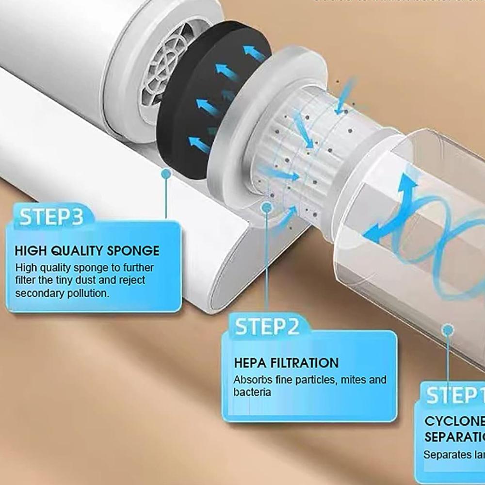 🛋️ نظام فلترة عالي الكفاءة: نظام فلترة مغلق بالكامل يمنع تسرب الغبار ويضمن تدفق هواء نقي، مع فلتر قابل للإزالة والغسل. (يُستخدم بعد أن يجف تمامًا)